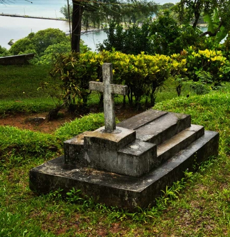 La tombe de Sylvain Roux, premier administrateur de la France pour Sainte-Marie au début du 19ème siècle, au pied du fort de la Possession est accompagnée d'une plaque commémorative.